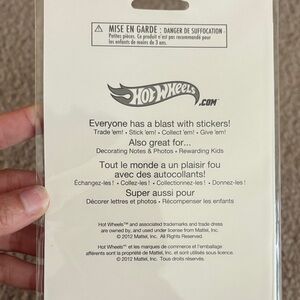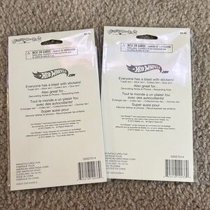 Brand new. Two sheets of Hot Wheels stickers. Bright multicolor car designs. Great for decorating notebooks, toys, and gifts. Durable glossy finish.