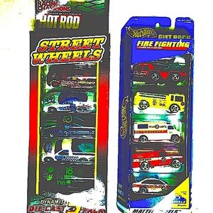Vintage Mattel Hot Wheels Fire Fighting #17459 SET & Racing Champion Hot Rod Street Wheels #32 SET. Both are diecast. New in box and still sealed.