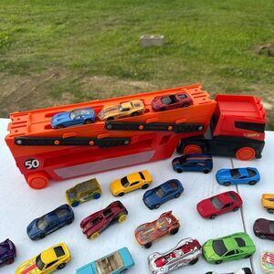 Hot Wheels Orange Toy Car Carrier with 43 Assorted Mini Cars