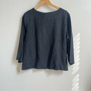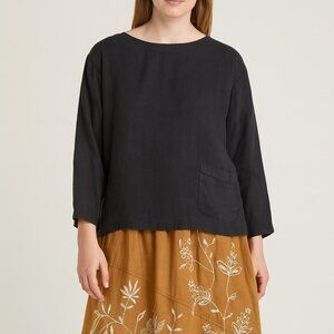 Hot cotton womens black 3/4 sleeve linen top with front pocket NWT Size Medium
