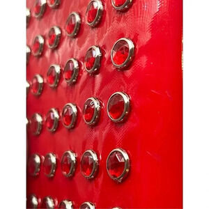 Red Rhinestones all over, Snap Closure, Silver hardware, Lined, Inside pocket perfect for ID, License or Credit Card.