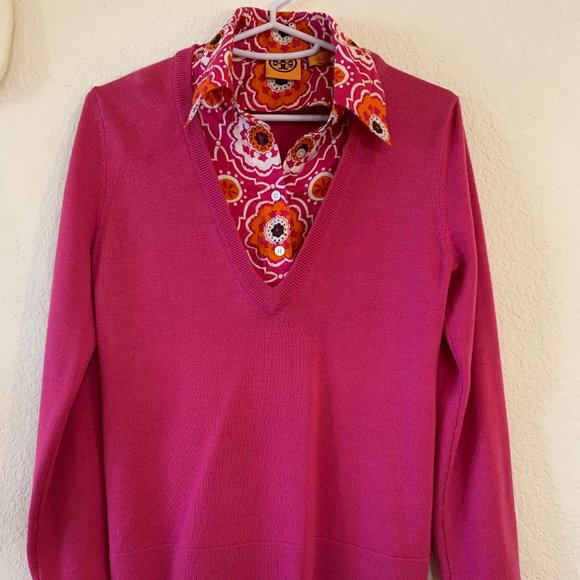 Hot pink Tory Burch 2-layered sweater with detachable under-shirt- size S