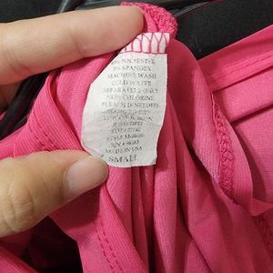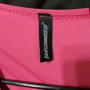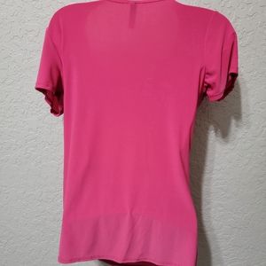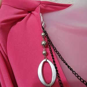 Jason maxwell size small hot pink or neon pink blouse with black necklace that clips on and easily unclips to wash blouse