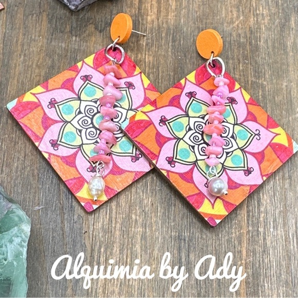 Hot pink mother of pearl and freshwater pearls maximalist huge earrings
