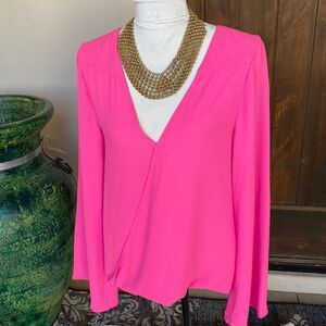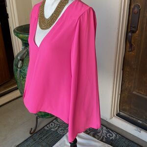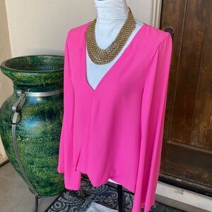 Hot pink v neck flowing sleeves top size lrg by olivaceous