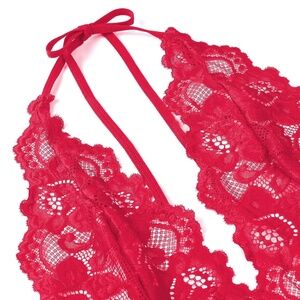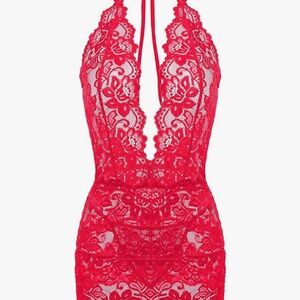 Hot red Lingerie for Women Lace Teddy Sexy Deep V Halter Open Back Bodysuit Baby