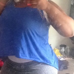 Cute blue tank top,(white shirt under not included) high low with large slit in the back. Made for (3x) but it looked great for me being a size XL