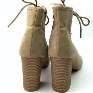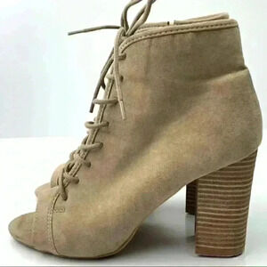 Hot tomato womens ankle boots size 7 beige faux suede lace up Peep toe booties