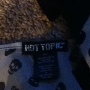 White silky top with black skulls and an open back, button up in front top. From hot topic never worn.