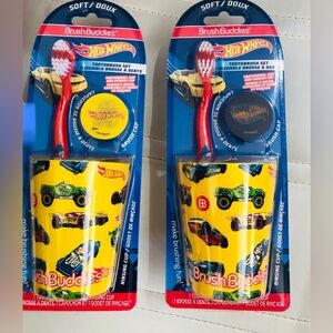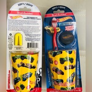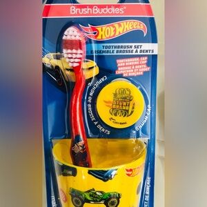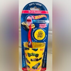 Hot wheels 3piece brush buddies soft ergonomic toothbrush cap and rinsing cup set for boys and girls