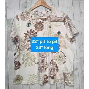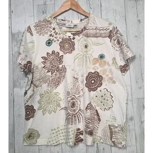 Hot Cotton Stylized Floral Earthtone Printed Heavyweight T-Shirt Sz L