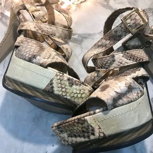 WHAT? These are HOT! Be seen in these 5 inch snake skin heels. You will get compliments every time you wear them. Surprisingly comfortable for a heel this tall. Double straps have flex to fit even a wide foot. Some scuffs as per photos. Most likely fixable. Enjoy!