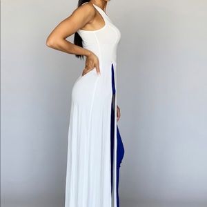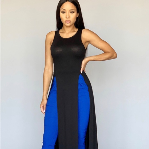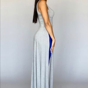 A sleeveless maxi tank top with a side slit. Comes in 3 Colors Black/Grey/White