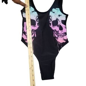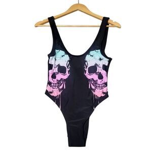 Hot Topic Midnight Hour One Piece Ombre Dripping Candy Skull Swimsuit Sz XS.