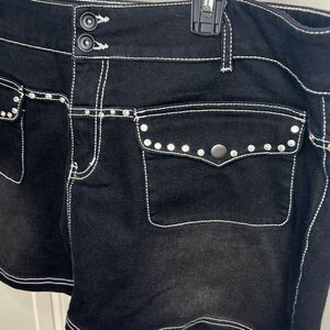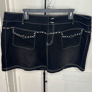 Social Collision Black Rhinestone Skull Denim Mini Skirt Plus Size 2