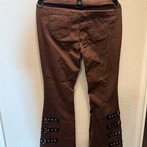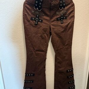 Hot Topic Social Collision Brown Contrast Grommet Strap Flare Pants Size 7