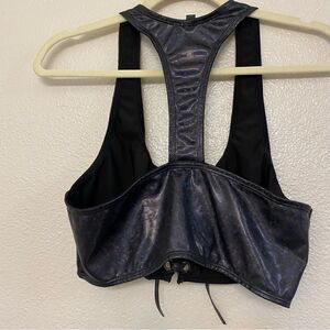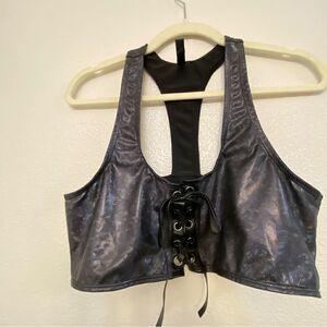 Hot Topic Black Holographic Lace-Up Bralette crop top corset vegas NYE rave L