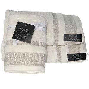 Hotel Balfour 4pc Cream And Taupe Turkish Cotton Towel Set 2 Bath 2 Hand