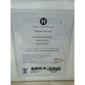 This Hotel Collection flat sheet is new in package, the packaging is a bit dirty but this doesnt affect the sheet in any way.