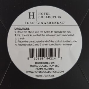 Hotel Collection reed diffuser in matte black packaging. Simple, modern design. Includes bold white logo and text.