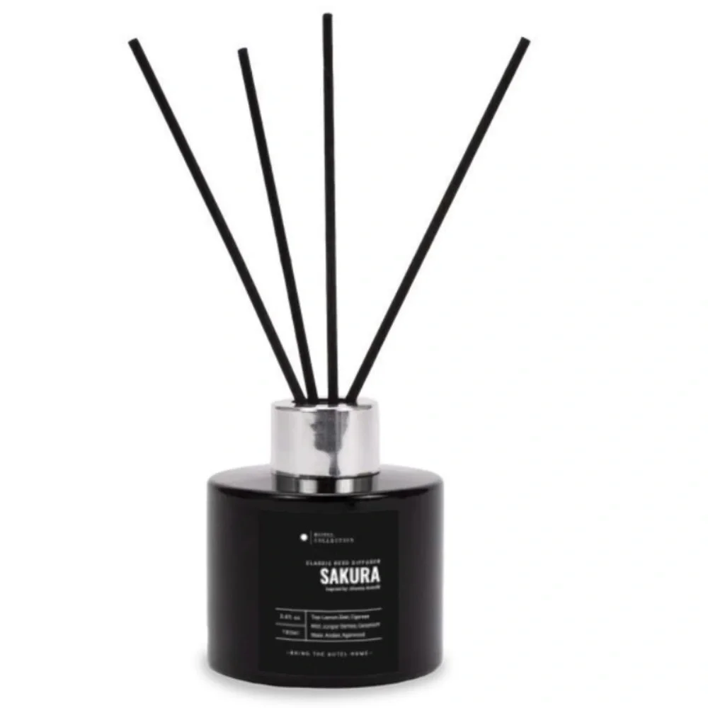 Luxurious reed diffuser with a sleek black design. Features a sophisticated fragrance blend. All sale’s final