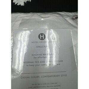 Condition: New in open packaging Size: Full/Queen Listing is for duvet cover only Featuring a sleek design and stunning shine, Structure bedding collection is an architectural masterpiece. The striking geometric pattern is softened by the brilliant bright white color. Pair with coordinating accessories for a fresh, elevated addition to your bedroom. 94"X96" Internal corner ties and zipper closure to keep your comforter in place Invisible zipper closure for a finished look 79% Polyester 21% Cotton Face 100% Cotton Back Machine washable