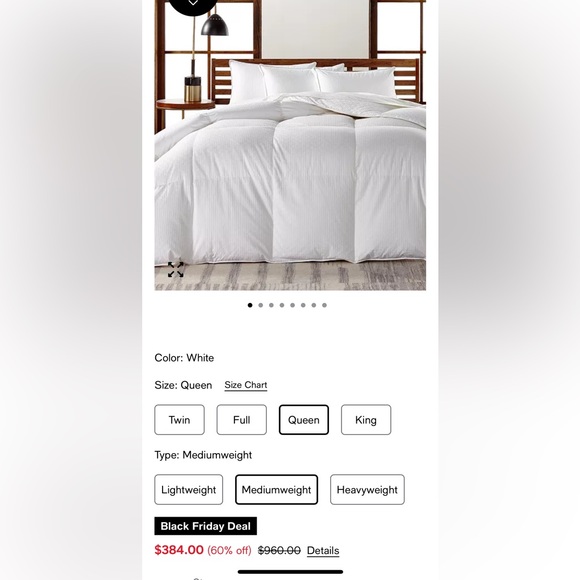 500 thread count, Hypoallergenic, super soft, UltraClean goose down, perfect to keep you cozy all year round