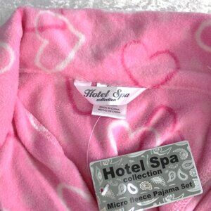 Hotel Spa Collection Pink Heart Microfleece Pajama Set Women’s Size Large
