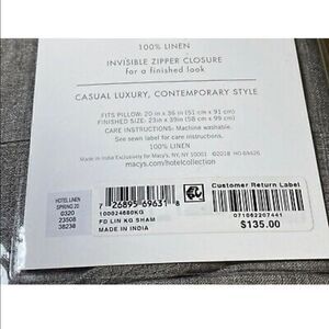 This is a New, Hotel Collection Linen Grey King Sham (sold at Macy’s for $135.)