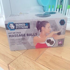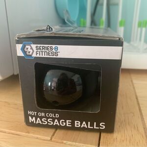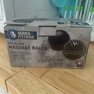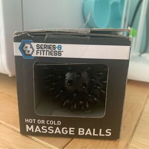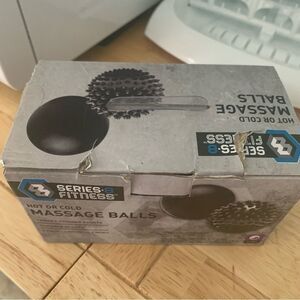 2 Pack Massage Balls — one smooth, one spiky. You can heat them or cool them to roll on your sore muscles. Never used! Includes box, which looks scuffed up from storage.
