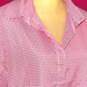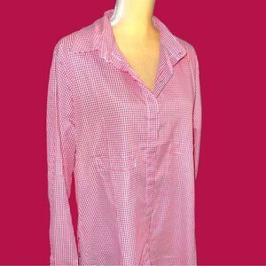 Hot pink checkered longer hem button up blouse