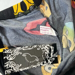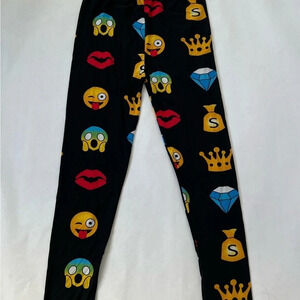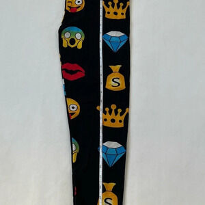 Hots Wing black yellow emoji leggings pants Mid Rise One Size Smiles NWT