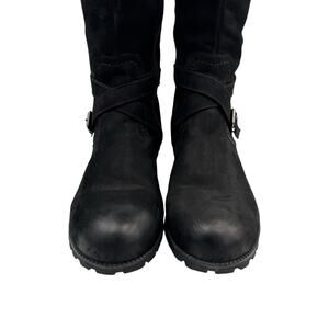 Hotter Comfort Concept Belle Black Nubuck Leather Knee High Moto Riding Boots