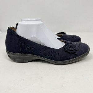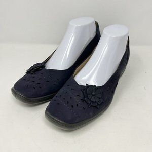 Hotter Comfort Concepts Womens Flats Vamp Dark Blue Suede Flower Size 9.5