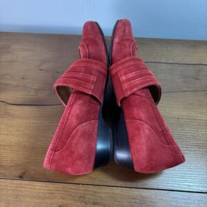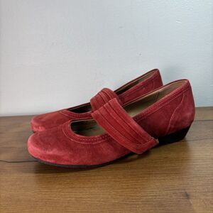 Hotter Red Mary Jane Shoes Size 6 Red Suede Wedge Shoes Round Toe Adriana