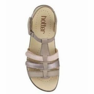 Hotter Women's Sol Sandals - Truffle New With Tag - No Box Included Size: 10 Color: Truffle - Ivory / Pink / Tan Lightweight, flexible sole Three touch close fastening Outer Material: Leather Inner Material: Textile Sole: Synthetic Closure: Hook & Loop Heel Type: Flat 4543 / PMB / C / CP