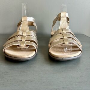 Hotter Sol Sandals Gold Champagne T Strap Leather Size 9 Strappy Leather Comfort Neutral
