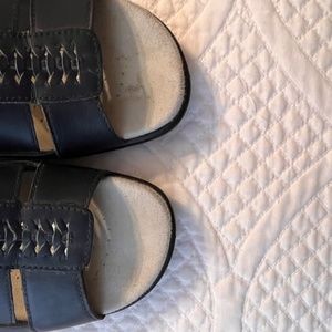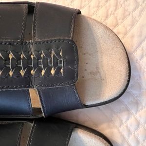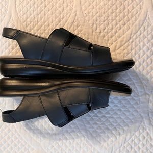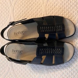 Hotter comfort concept black leather sandals. Basically brand new with very little signs of wear. Has a buckle fastening ankle strap to keep sandals secured to feet. Leather has a nice matte finish to it. Size 8.