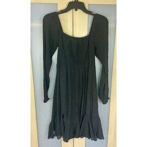 Hotwy Womens Black Tunic Dress Sz M Casual Waffle Knit Smocked Whimsygoth Witchy