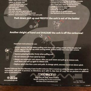 Houdini Lever Corkscrew with foil cutter and extra spiral from the makers of the Rabbit
