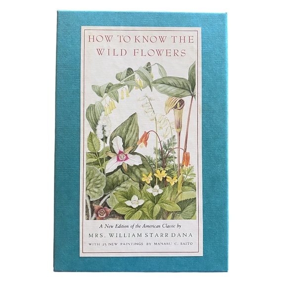 Vintage 1989 Houghton Mifflin hardcover in like-new condition with vibrant color plates and crisp, clean pages. This is the beautifully reissued edition of How to Know the Wild Flowers by Mrs. William Starr Dana, featuring illustrations by Marion Satterlee and 25 new paintings by Manabu C. Saito. Book is exceptionally well preserved; only the back of the slipcase shows a stain, with the rest of the case clean and sturdy.