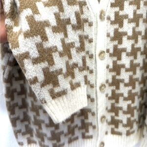 Houndstooth Oversized Cardigan is a classic and versatile knitwear item featuring a distinctive two-tone pattern.