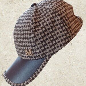 Houndstooth Baseball Cap, Brown, Initial M decoration bling