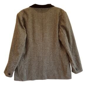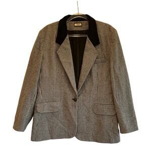 Houndstooth Blazer Wool Blend Black Velvet Collar Vintage Academia Style USA 16