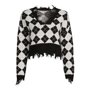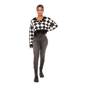 Houndstooth Distressed Cropped Argyle Monochromatic Sweater Size S | Just Polly