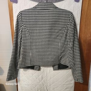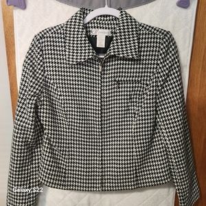 Houndstooth lined jacket. size 6. Only worn once. Dry Clean Only. P2P is 18 inches and length from top of collar to bottom hem is 21.5 inches.... sleeve length is 24 inches. SmokeFree home with 1 Goldendoodle