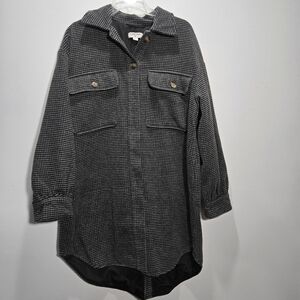 Houndstooth Longline Oversized Shirt Jacket Shacket L