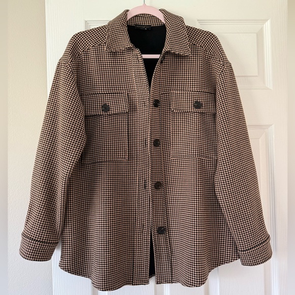 Chic houndstooth jacket with classic design. Perfect for layering.