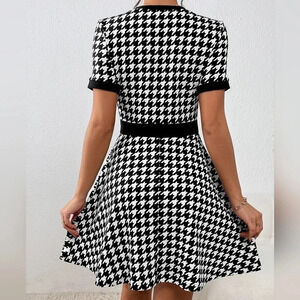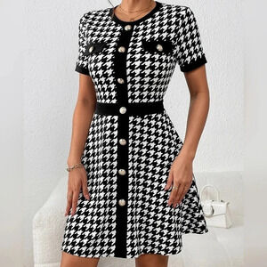 Houndstooth Print Button Front Dress