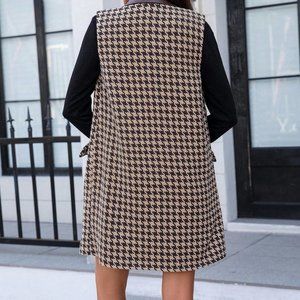 Houndstooth Print Double Breasted Belted Vest Overcoat Brown